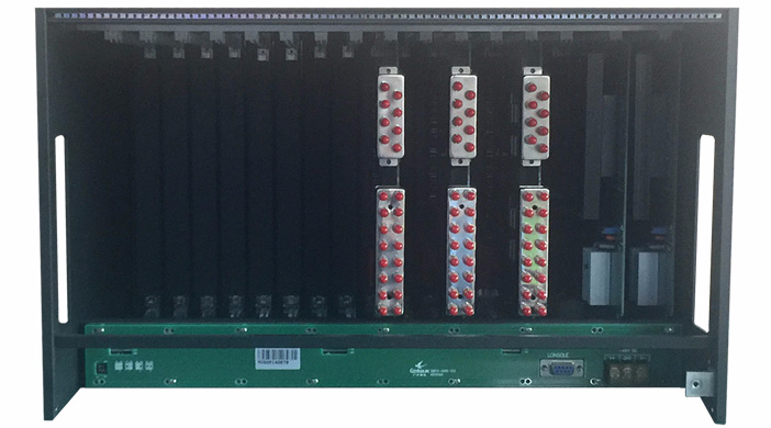 ZMUX-1200 由機箱、電源板和E1倒換板構成。機箱采用標準19英寸6U高、插卡式結構,共有16個板卡插槽,包括2個電源板插槽,14個E1倒換板通用插槽。可選:8進4出 E1倒換板、4進2出 E1倒換板,最大提供56路重要E1信號自動保護功能。